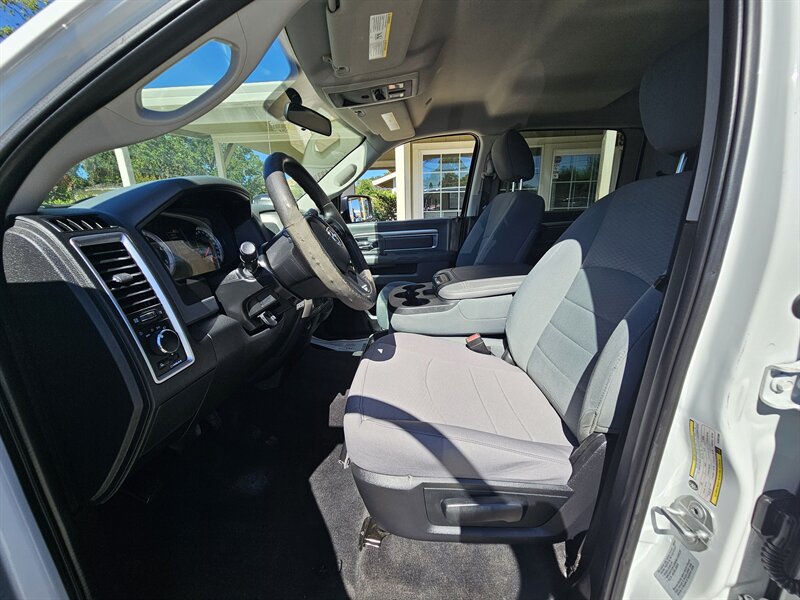 Inside, the RAM 2500 SLT is spacious and comfortable, with Gray cloth upholstery and ample legroom for passengers. The factory default features include power windows and locks, a 6-speaker audio system with Bluetooth connectivity, and a 5-inch touchscreen display.